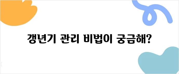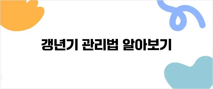 이 글은 갱년기 관리에 대한 정보 제공을 목적으로 하며, 개인의 건강 상태에 따라 다를 수 있습니다. 항상 안전이 최우선임을 잊지 마세요.